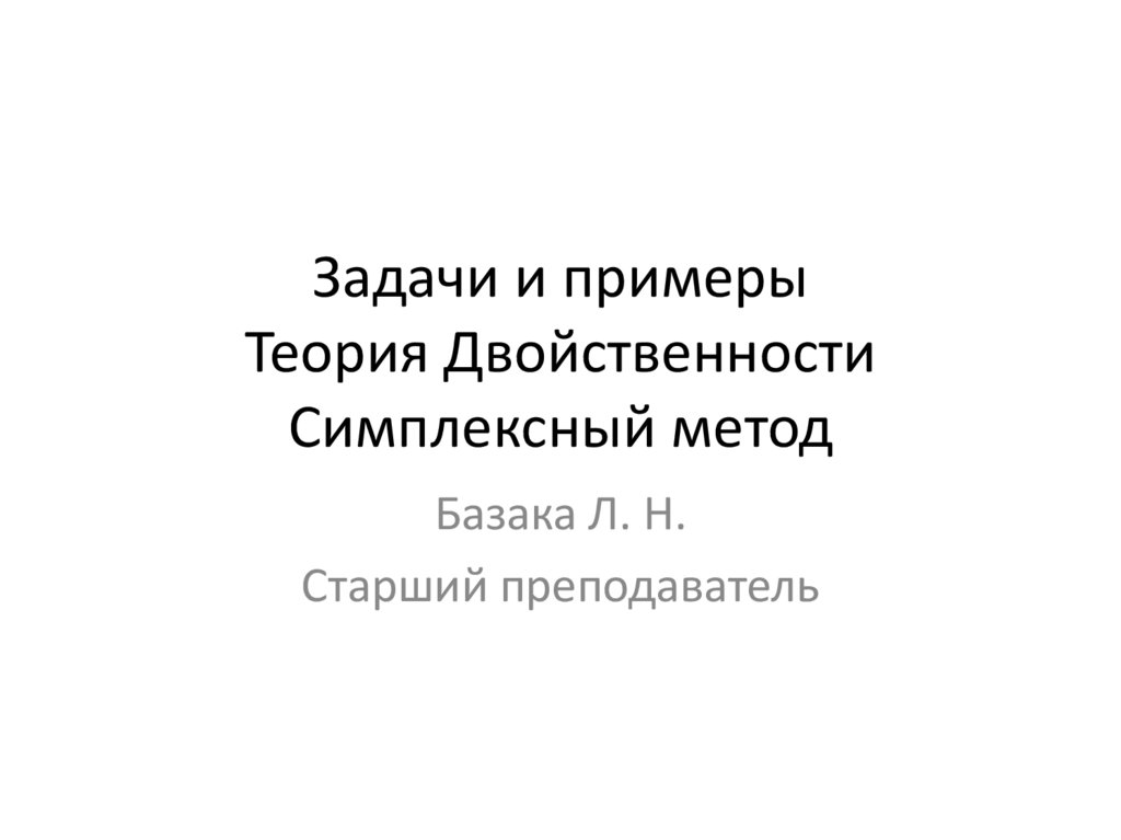 Задачи и примеры. Теория Двойственности. Симплексный метод