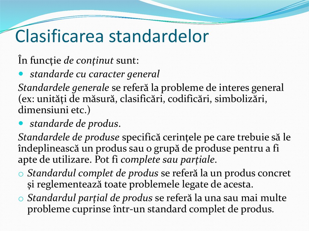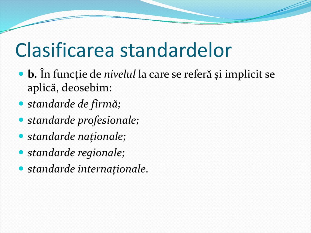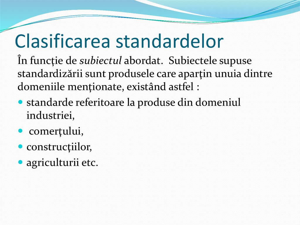 Clasificarea standardelorÎn funcţie de subiectul abordat. Subiectele supuse