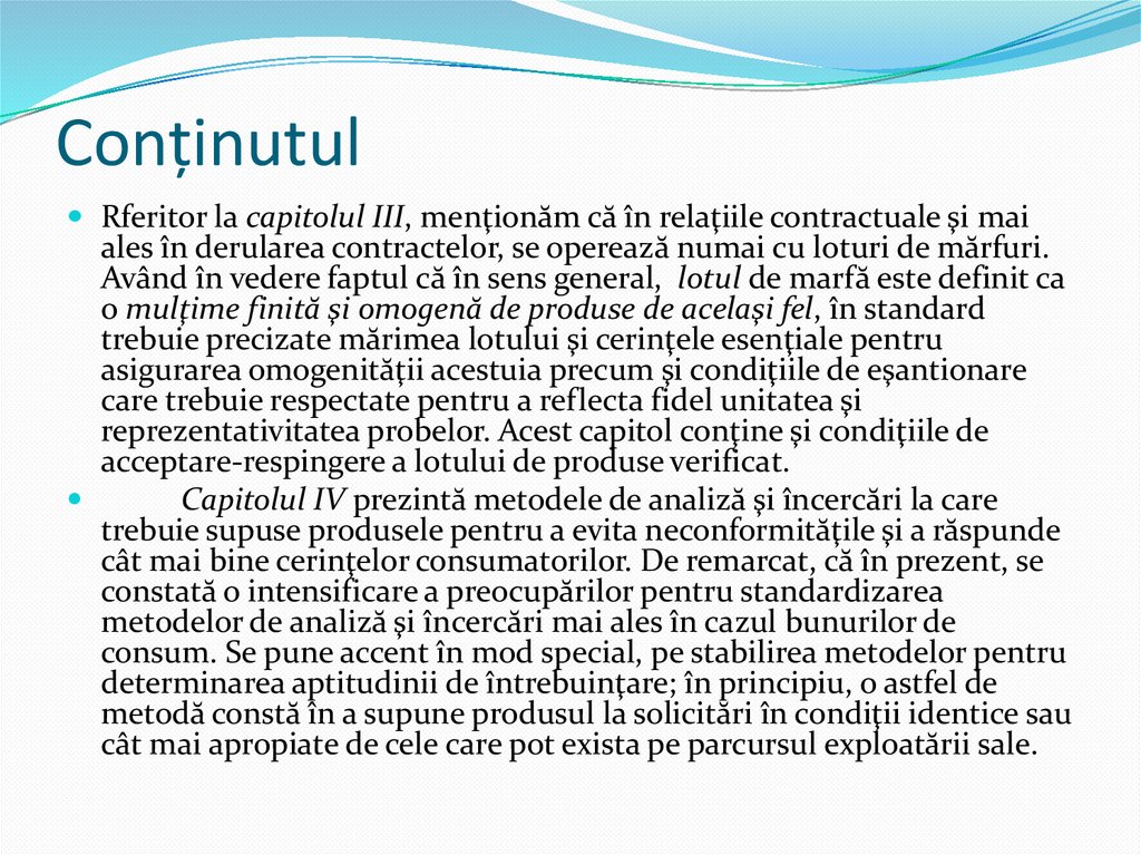 reprezentativitatea probelor. Acest capitol conţine şi condiţiile de