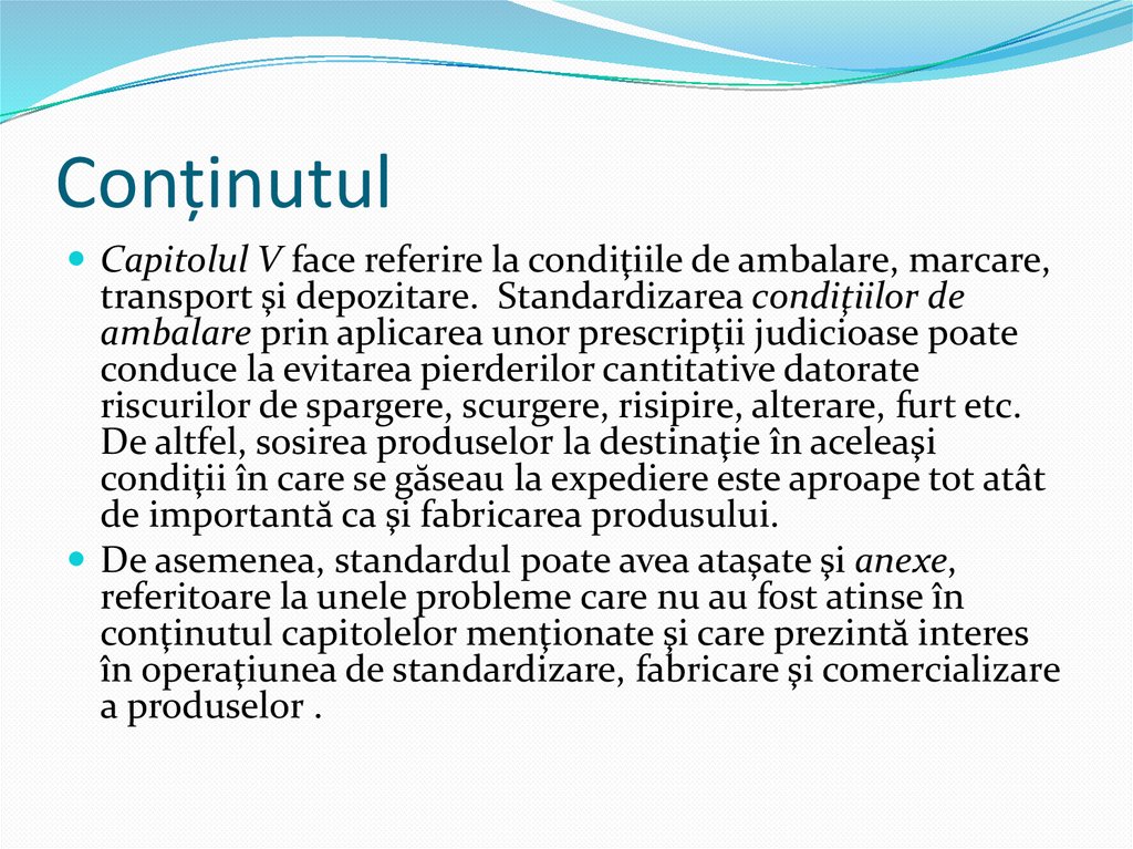 ConținutulCapitolul V face referire la condiţiile de ambalare, marcare,