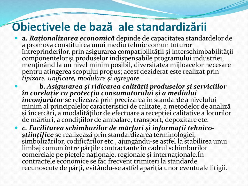 Obiectivele de bază ale standardizăriia. Raţionalizarea economică depinde de capacitatea standardelor de