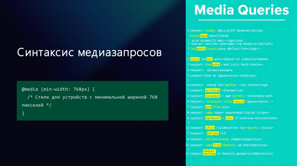 Синтаксис медиазапросов@media (min-width: 768px) {