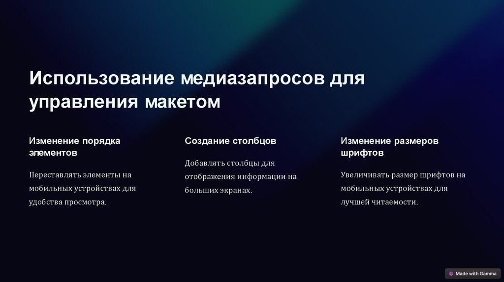 Что такое медиазапросыМедиазапросы - это инструмент CSS, который позволяет