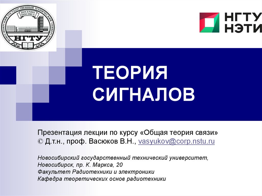 Презентация лекции по курсу «Общая теория связи»© Д.т.н., проф. Васюков В.Н., vasyukov@corp.nstu.ru