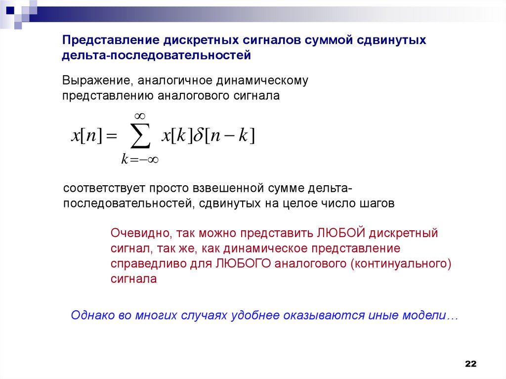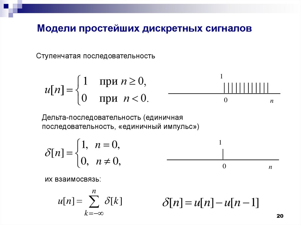 Для множества дискретных сигналов, таких, что все значения(отсчеты) этих сигналов равны нулю, за исключением значений,