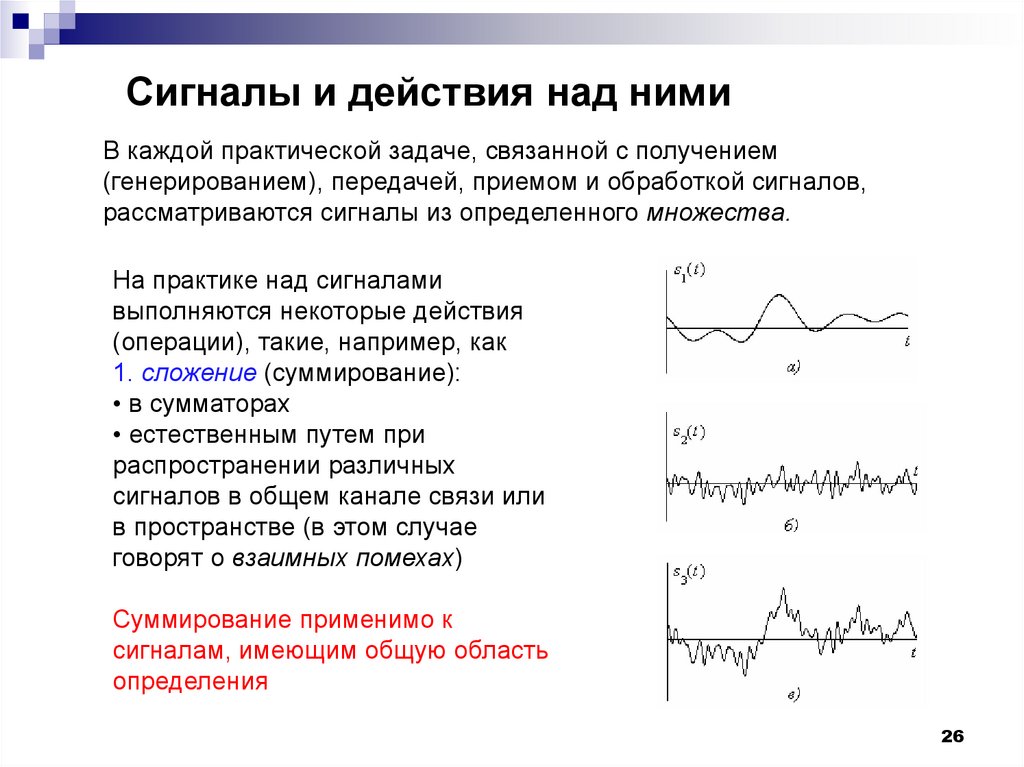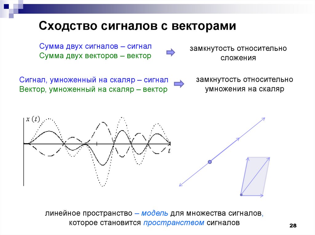 Все эти аксиомы выполняются для сигналов, как аналоговых, так и