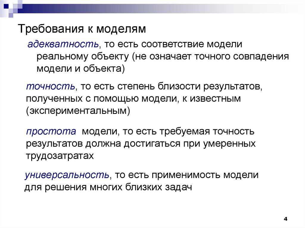адекватность, то есть соответствие моделиреальному объекту (не означает точного совпадения