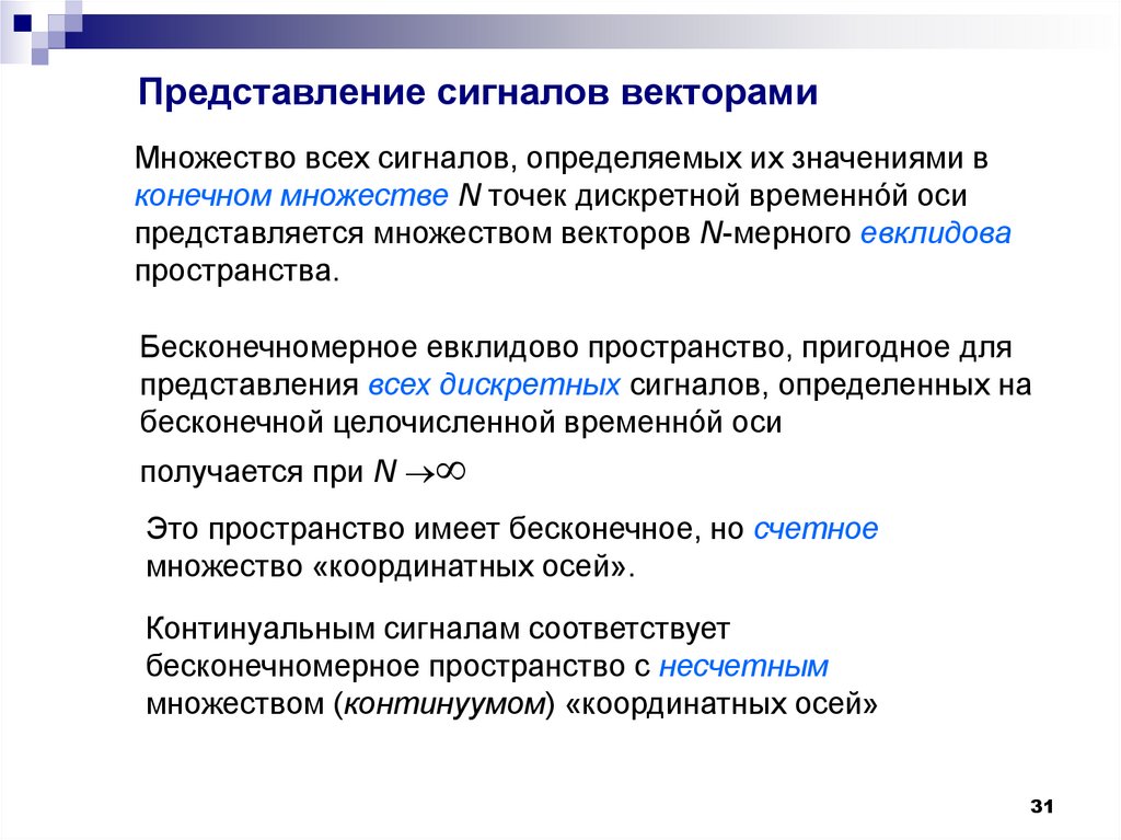 Множество всех сигналов, определяемых их значениями вконечном множестве N точек дискретной временнóй оси
