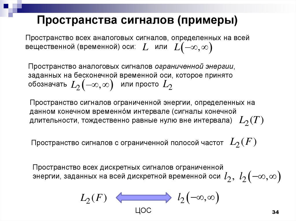 Пространство всех аналоговых сигналов, определенных на всейвещественной (временной) оси: L или L ,