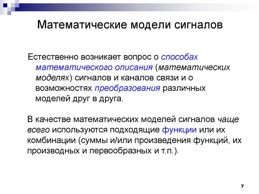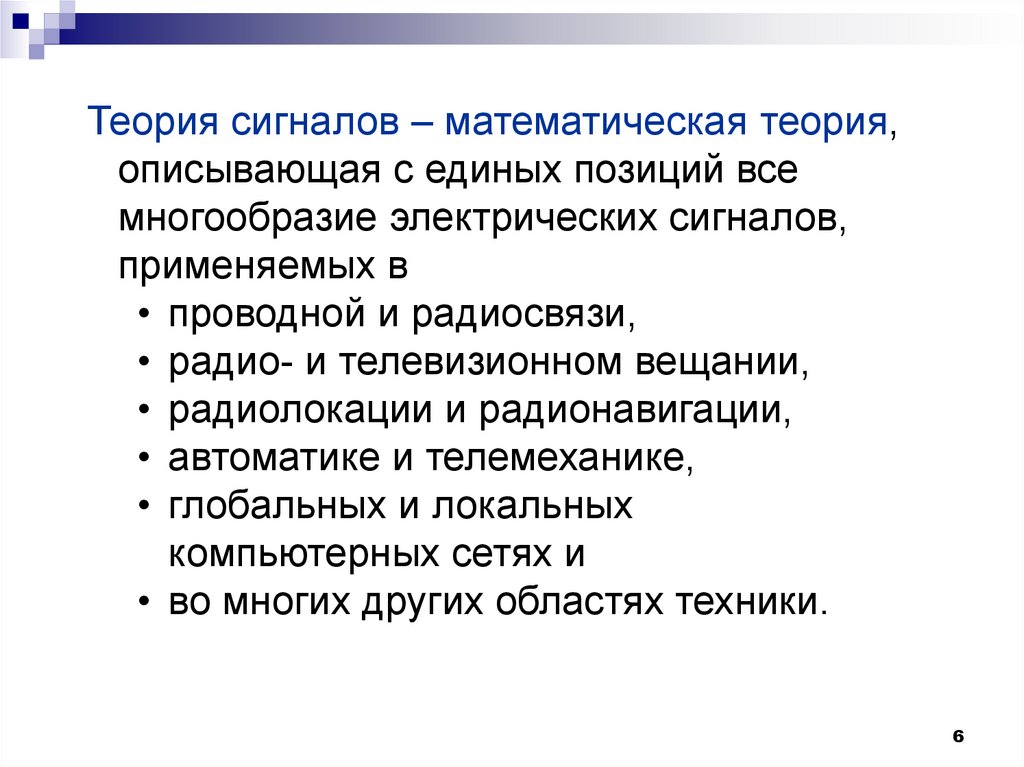 Теория сигналов – математическая теория,описывающая с единых позиций все