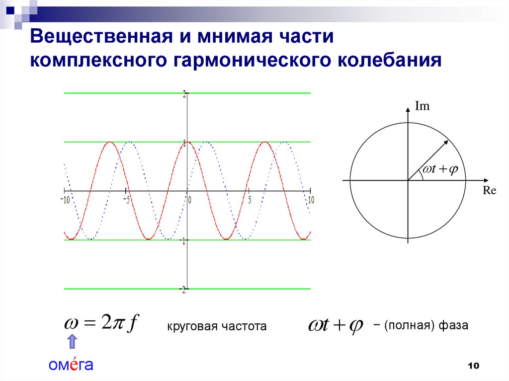 10. Вещественная и мнимая части комплексного гармонического колебания