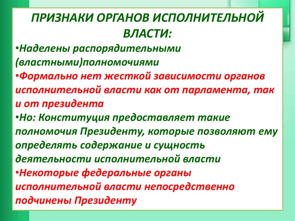 ПРИЗНАКИ ОРГАНОВ ИСПОЛНИТЕЛЬНОЙВЛАСТИ: