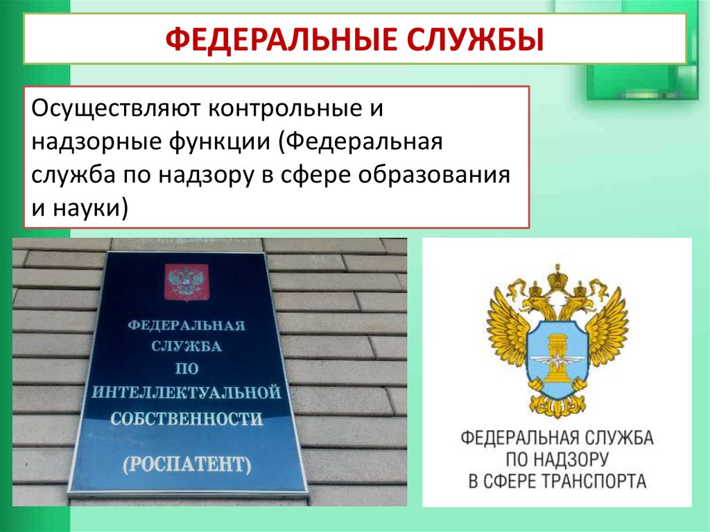 ФЕДЕРАЛЬНЫЕ СЛУЖБЫОсуществляют контрольные и