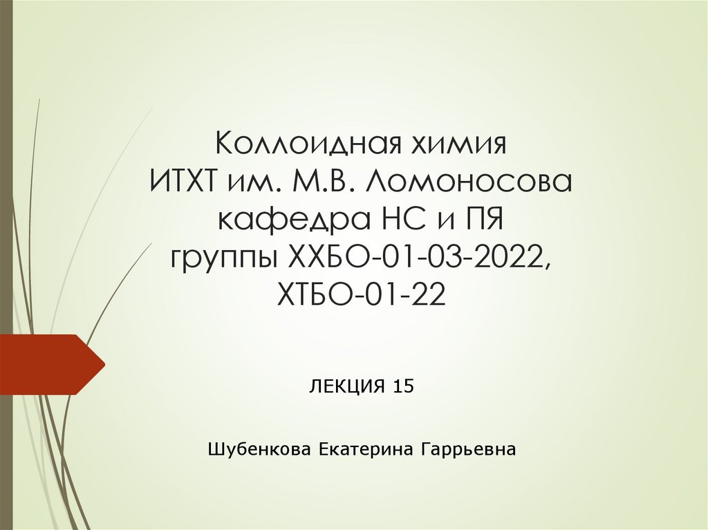 Коллоидная химияЛЕКЦИЯ 15