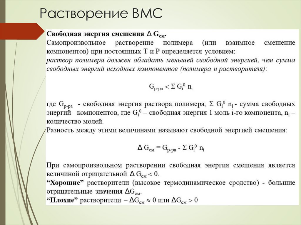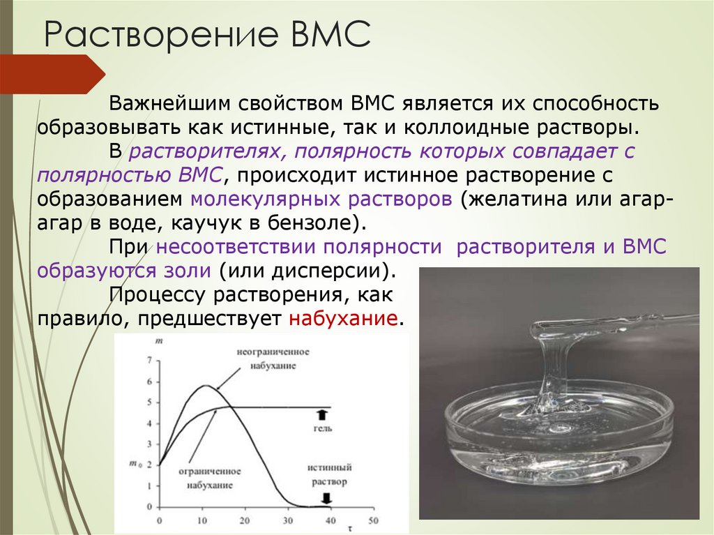 Растворение ВМСВажнейшим свойством ВМС является их способность