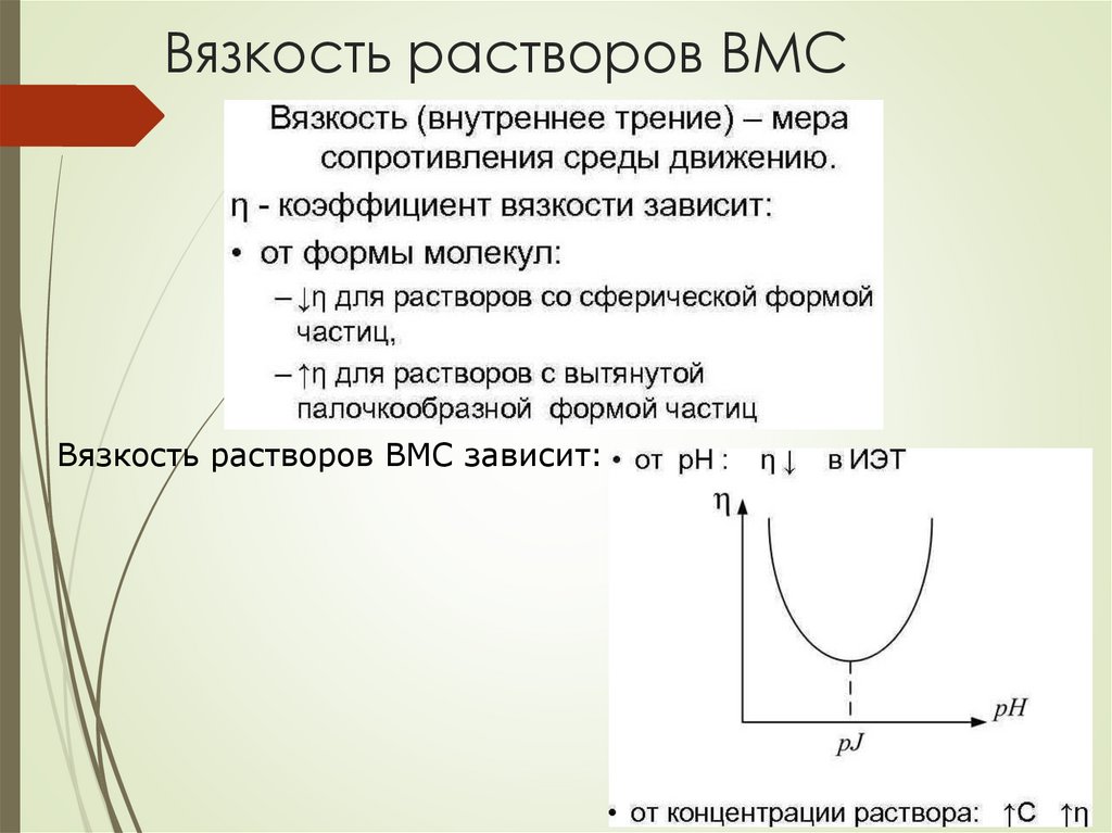 Вязкость растворов ВМСВязкость растворов ВМС зависит: