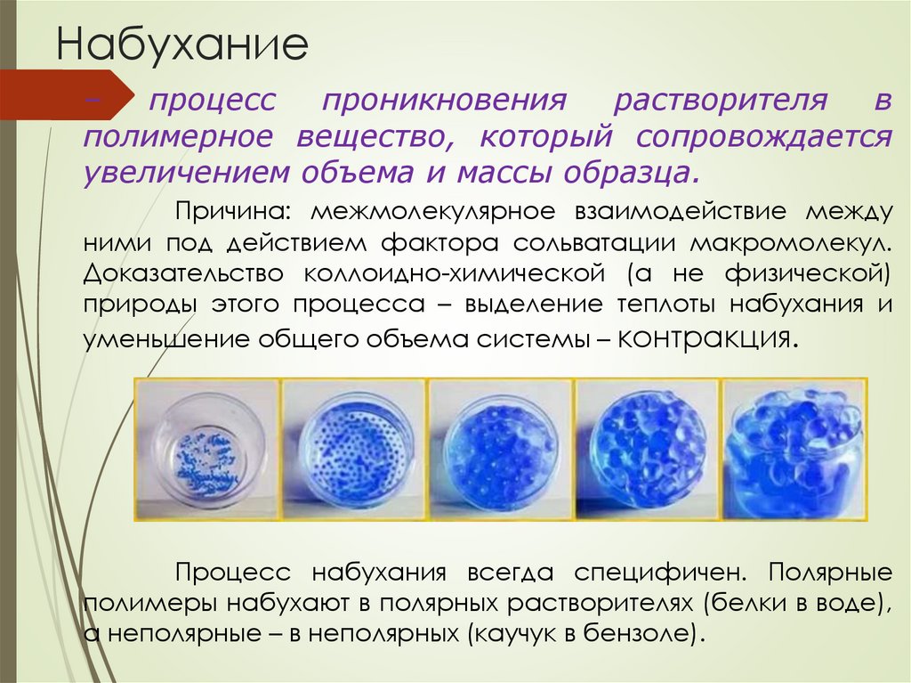 Процесс набухания всегда специфичен. Полярные