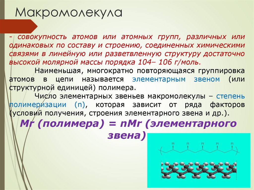 Макромолекула- совокупность атомов или атомных групп, различных или