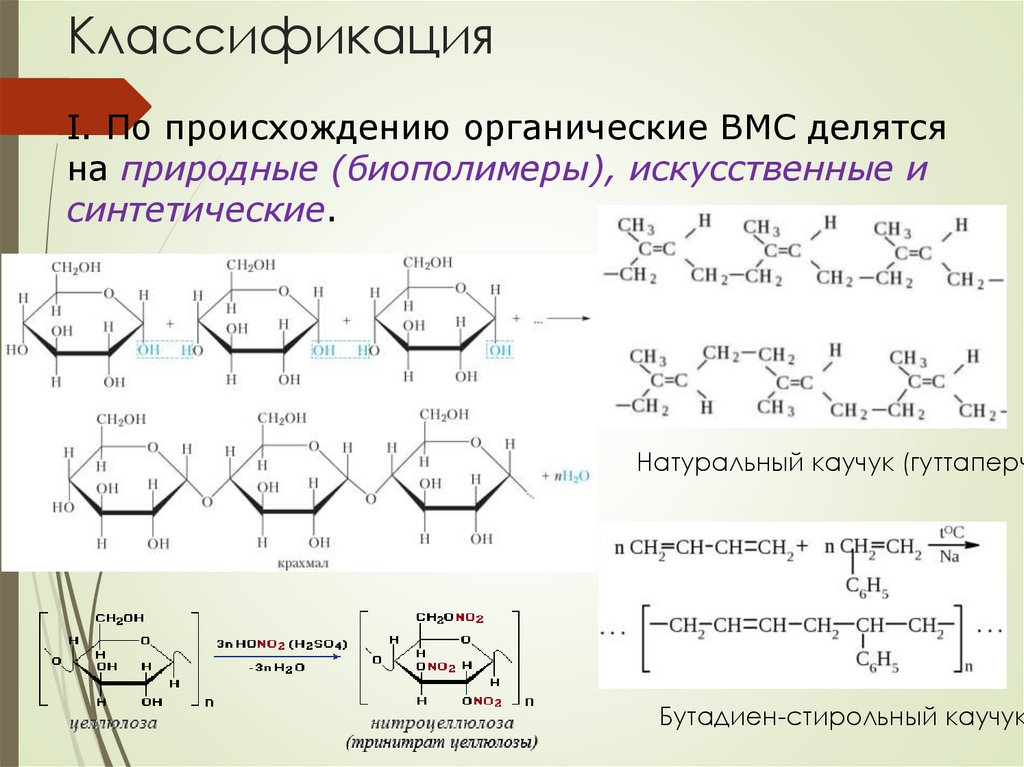 КлассификацияI. По происхождению органические ВМС делятся