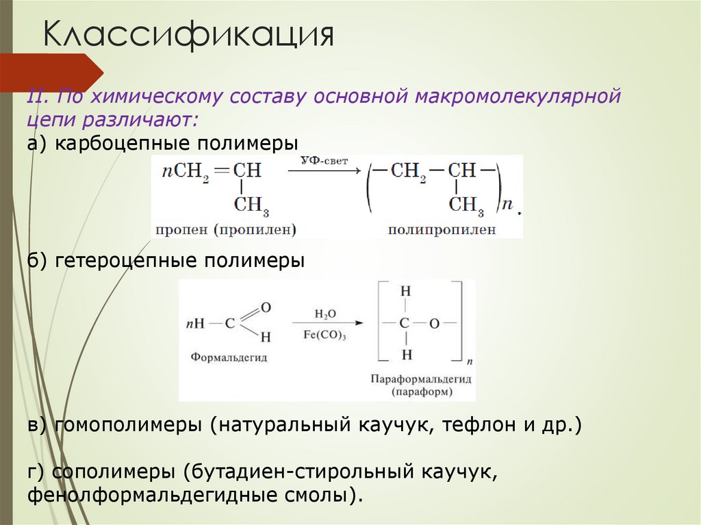 КлассификацияII. По химическому составу основной макромолекулярной