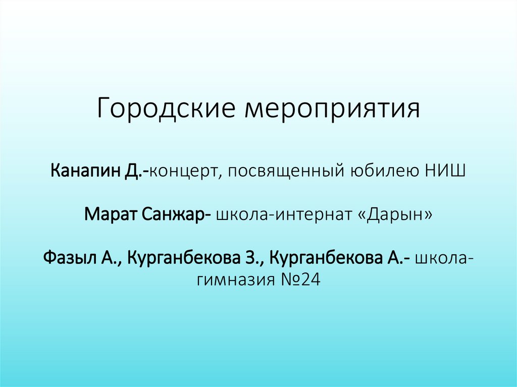 Городские мероприятияКанапин Д.-концерт, посвященный юбилею НИШ
