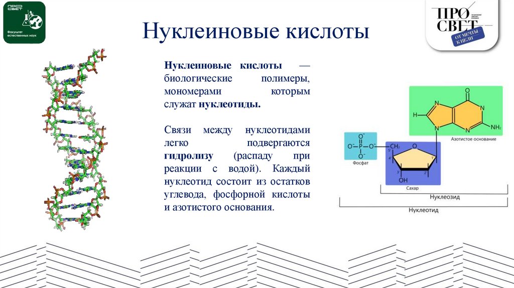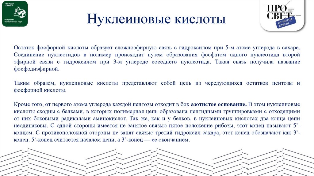 краям он обвит двумя нитями, состоящими из чередующихся остатков дезоксирибозы и фосфорной кислоты.