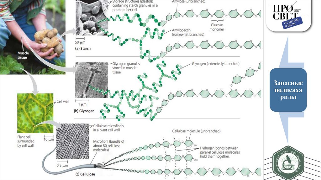 полисахариды, например целлюлоза и хитин, входят в состав клеточных стенок, хитинового