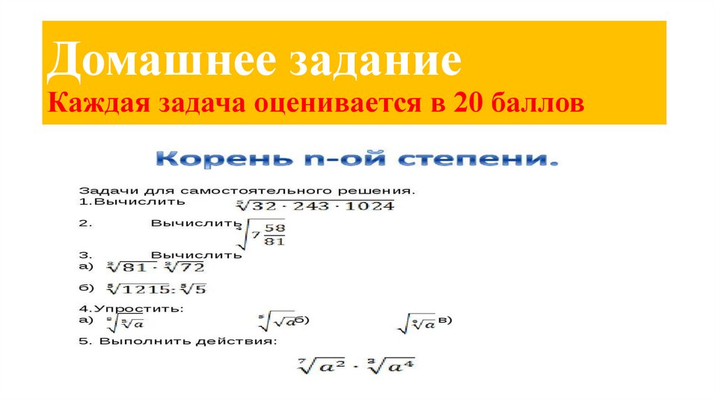 Домашнее заданиеКаждая задача оценивается в 20 баллов
