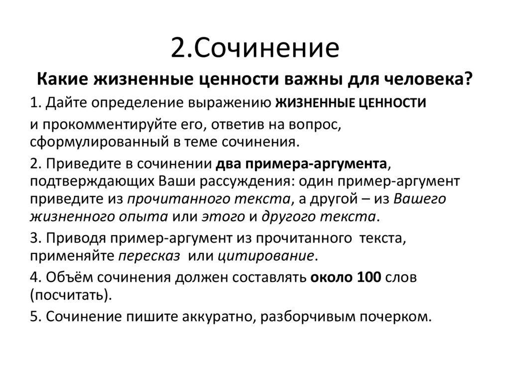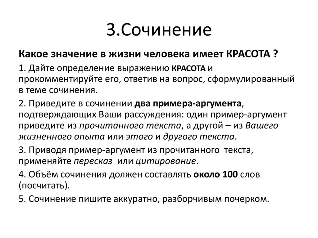 5. Сочинение пишите аккуратно, разборчивым почерком.