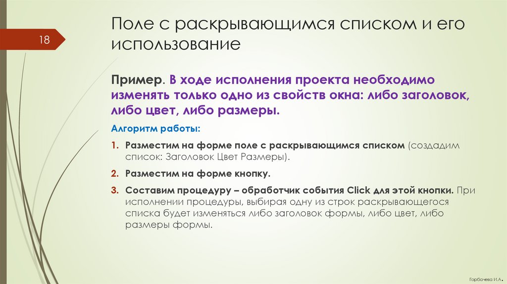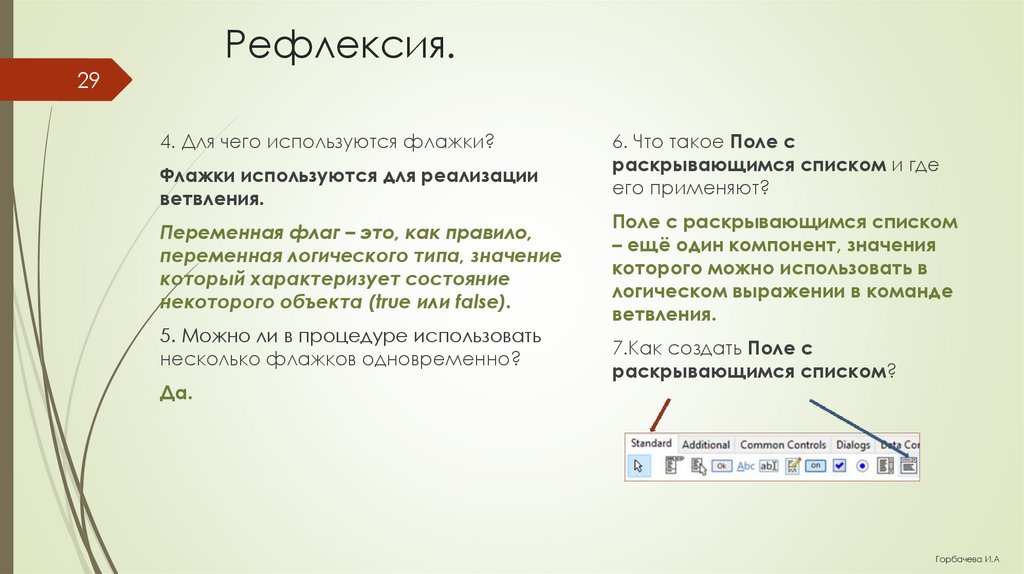 обучающая: формирование понятия флажки, поле с раскрывающимся списком;