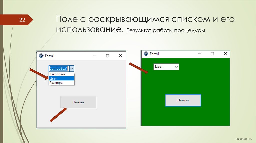 списка будет изменяться либо заголовок формы, либо цвет, либо