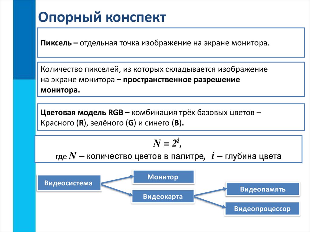 Опорный конспектПиксель – отдельная точка изображение на экране монитора.