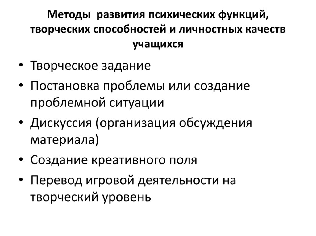 24. Методы развития психических функций, творческих способностей и личностных качеств учащихся