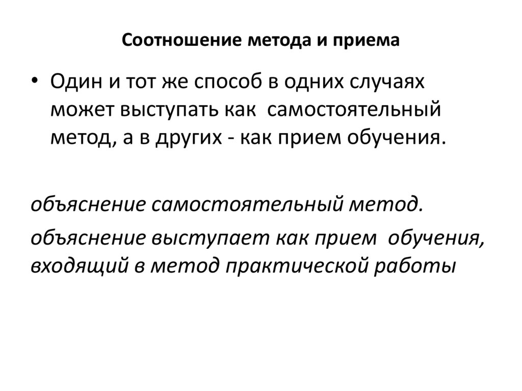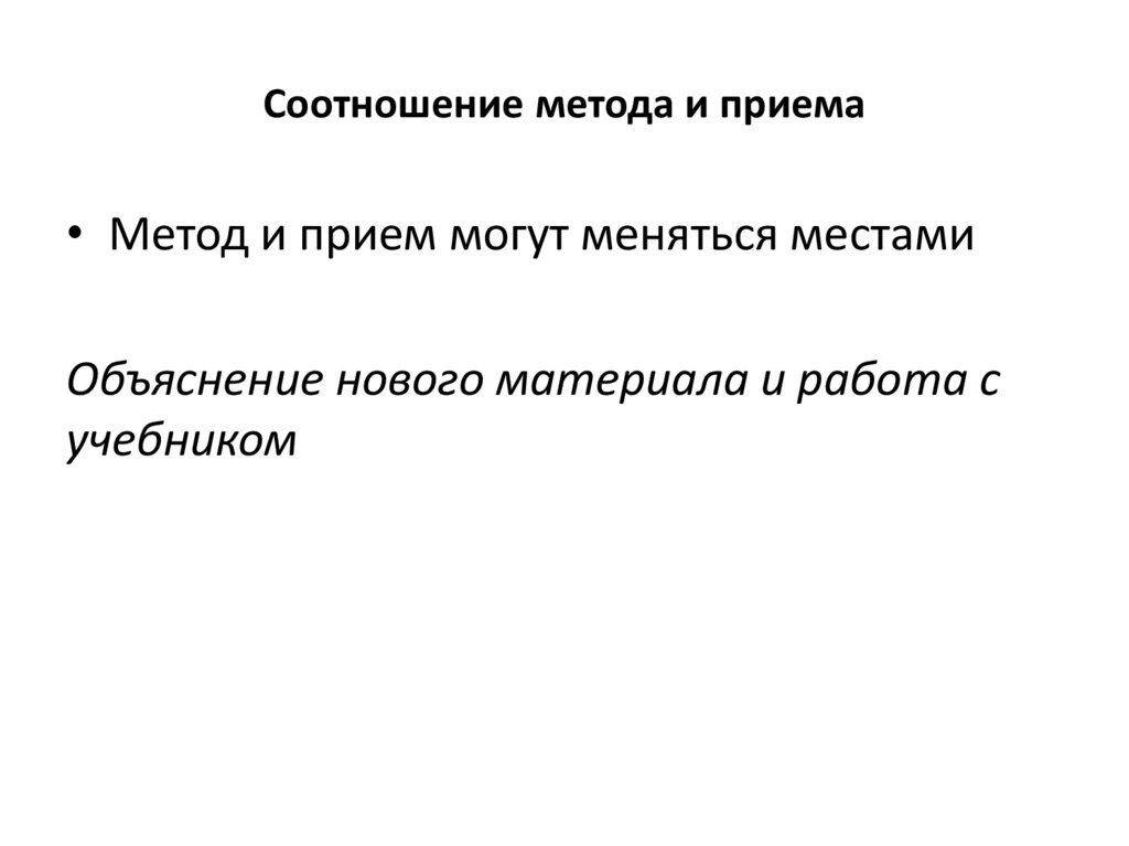 • Метод и прием могут меняться местамиОбъяснение нового материала и работа с