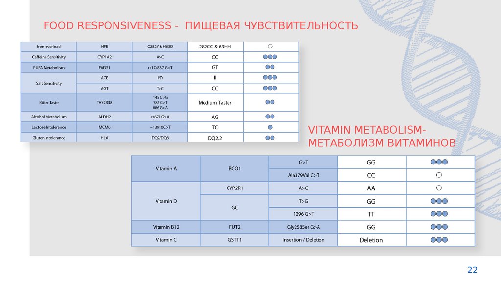 FOOD RESPONSIVENESS - ПИЩЕВАЯ ЧУВСТВИТЕЛЬНОСТЬVITAMIN METABOLISMМЕТАБОЛИЗМ ВИТАМИНОВ