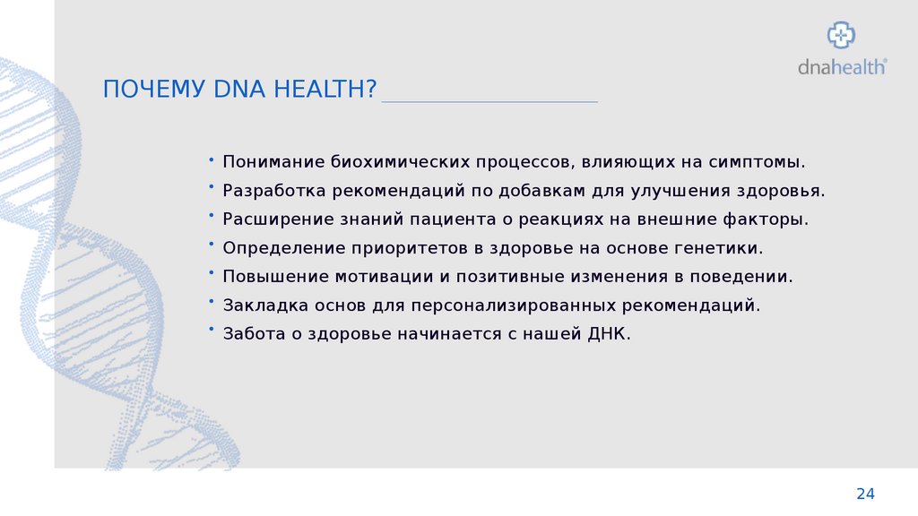 ПОЧЕМУ DNA HEALTH?Понимание биохимических процессов, влияющих на симптомы.