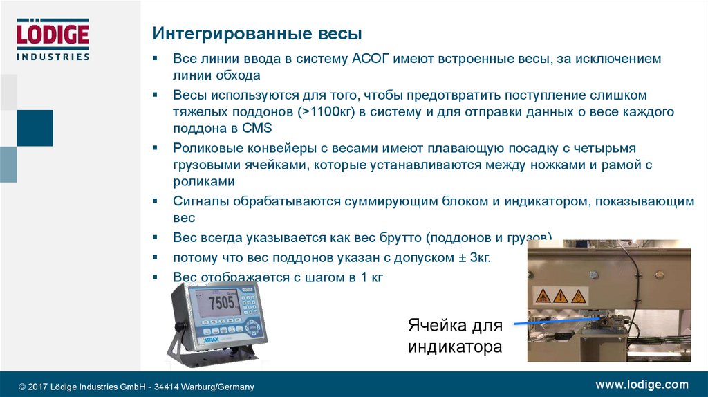 Интегрированные весыВсе линии ввода в систему АСОГ имеют встроенные весы, за исключением