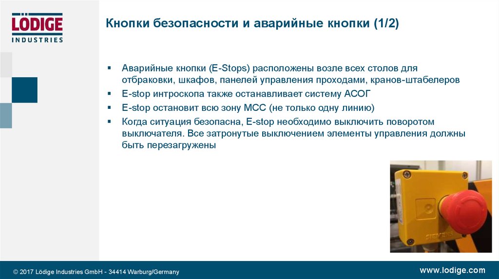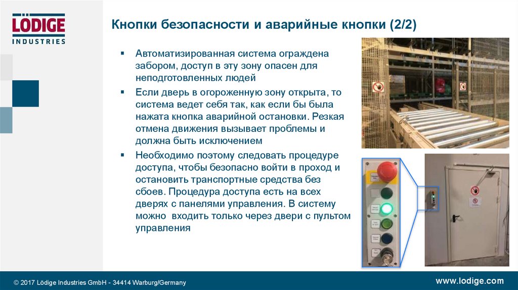 Кнопки безопасности и аварийные кнопки (2/2)Автоматизированная система ограждена