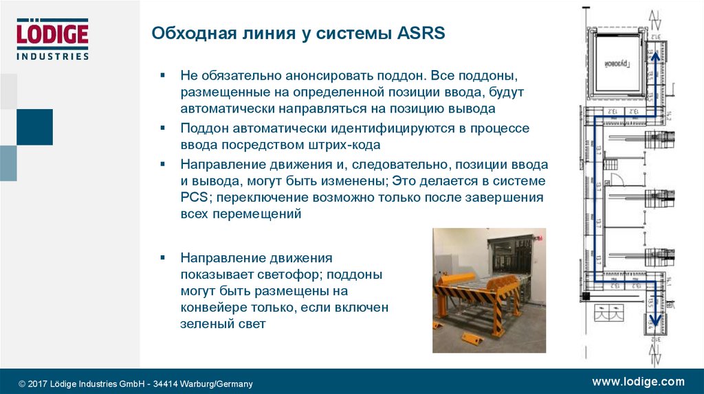 Обходная линия у системы ASRSНе обязательно анонсировать поддон. Все поддоны,