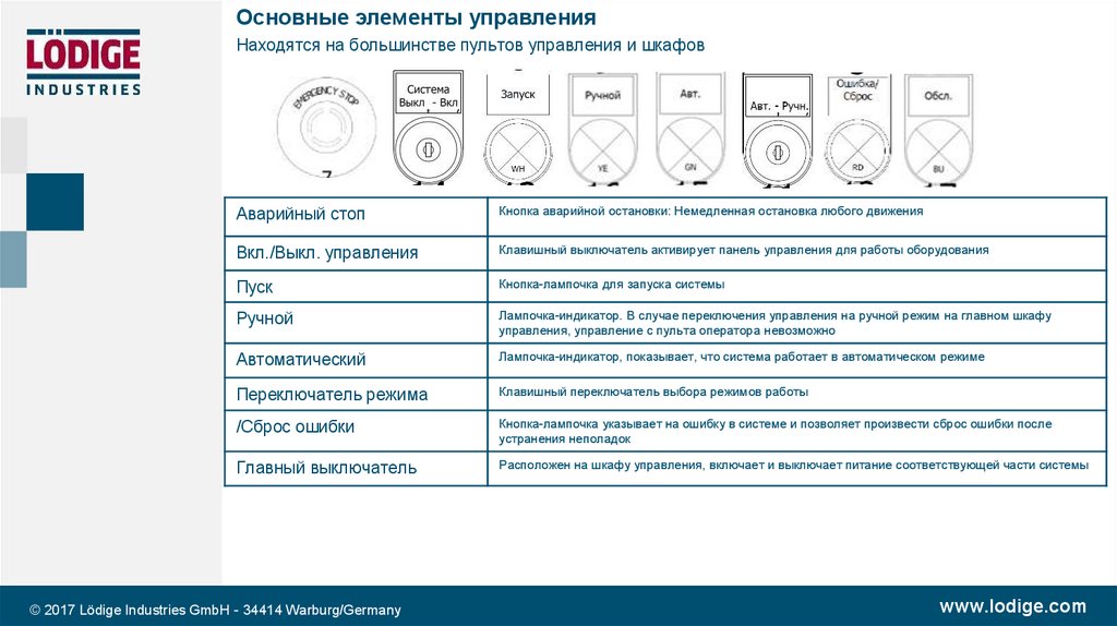 Основные элементы управленияНаходятся на большинстве пультов управления и шкафов