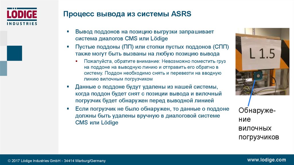 погрузчик будет обнаружен перед выводной линией