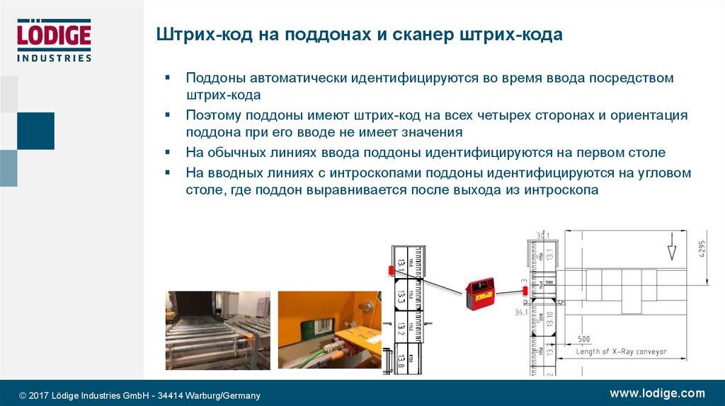 На вводных линиях с интроскопами поддоны идентифицируются на угловом