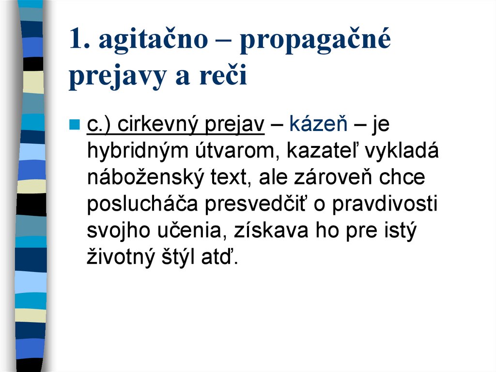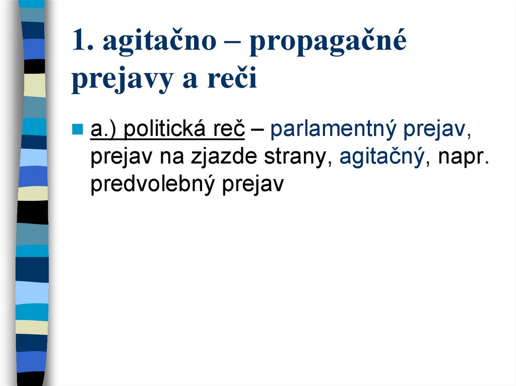 1. agitačno – propagačnéprejavy a reči