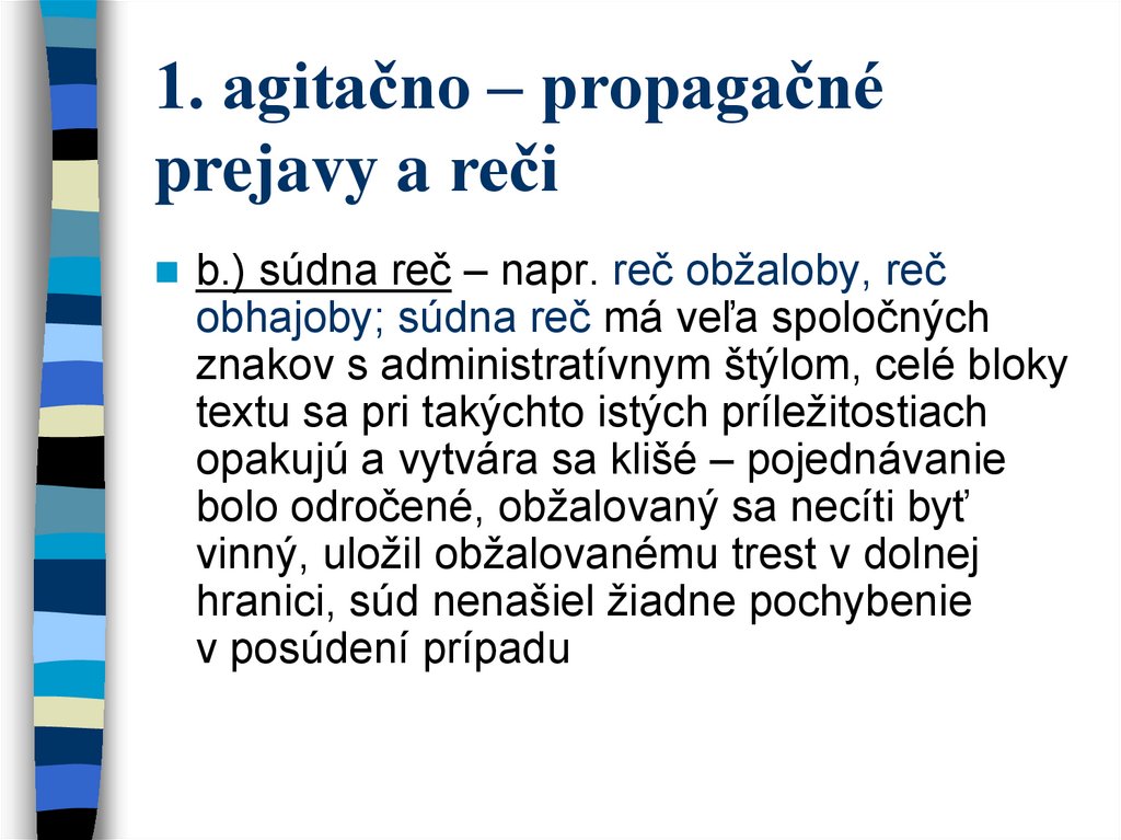 13. 1. agitačno – propagačné prejavy a reči