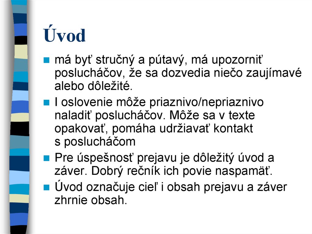 má byť stručný a pútavý, má upozorniťposlucháčov, že sa dozvedia niečo zaujímavé