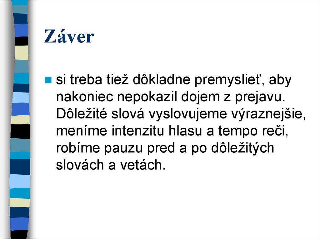 si treba tiež dôkladne premyslieť, abynakoniec nepokazil dojem z prejavu.