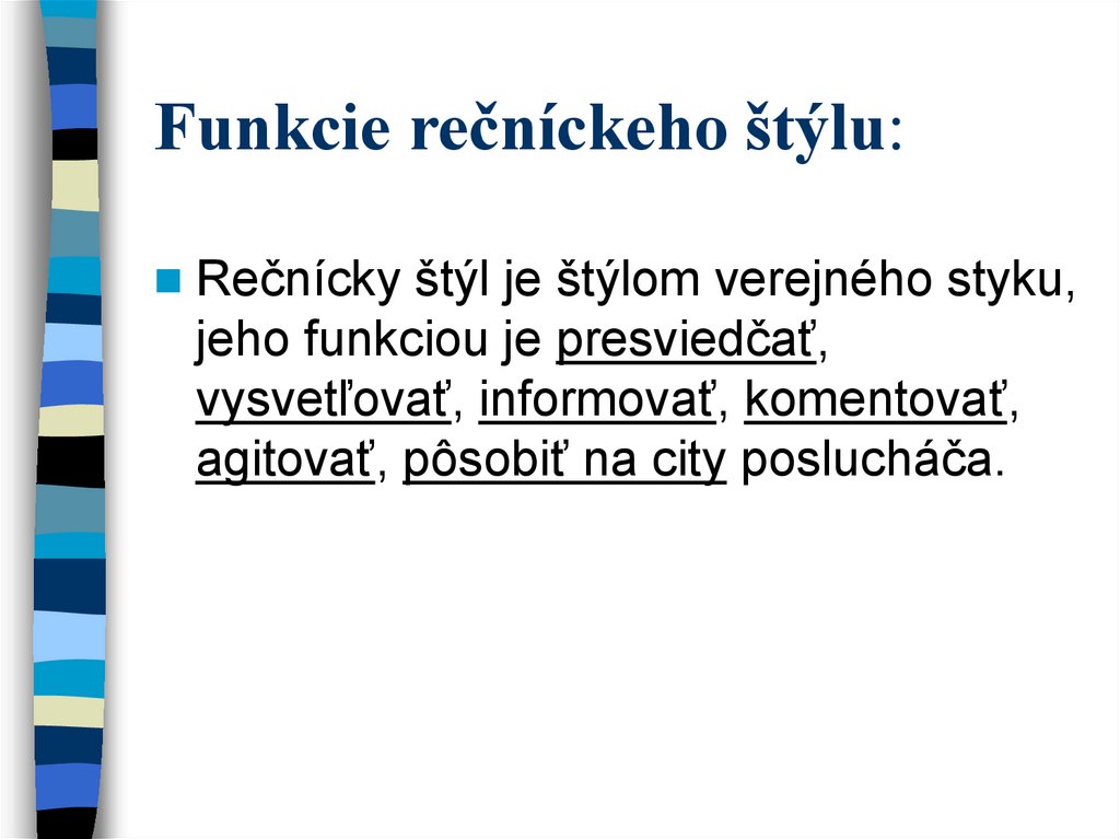3. Funkcie rečníckeho štýlu: