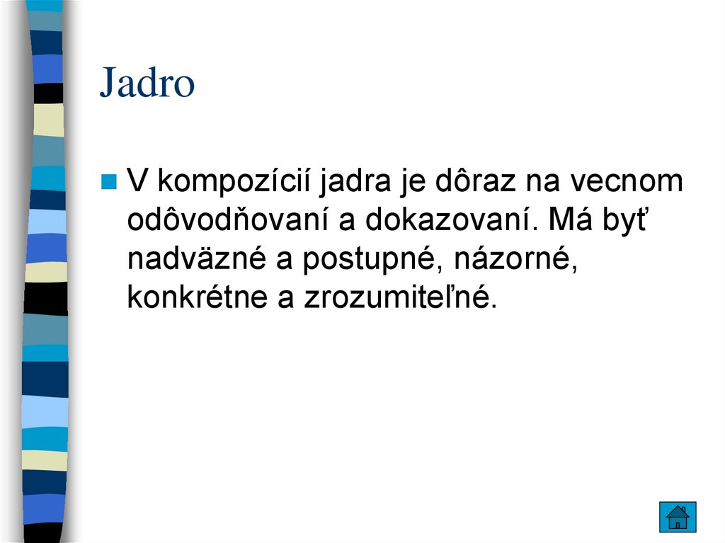 V kompozícií jadra je dôraz na vecnomodôvodňovaní a dokazovaní. Má byť