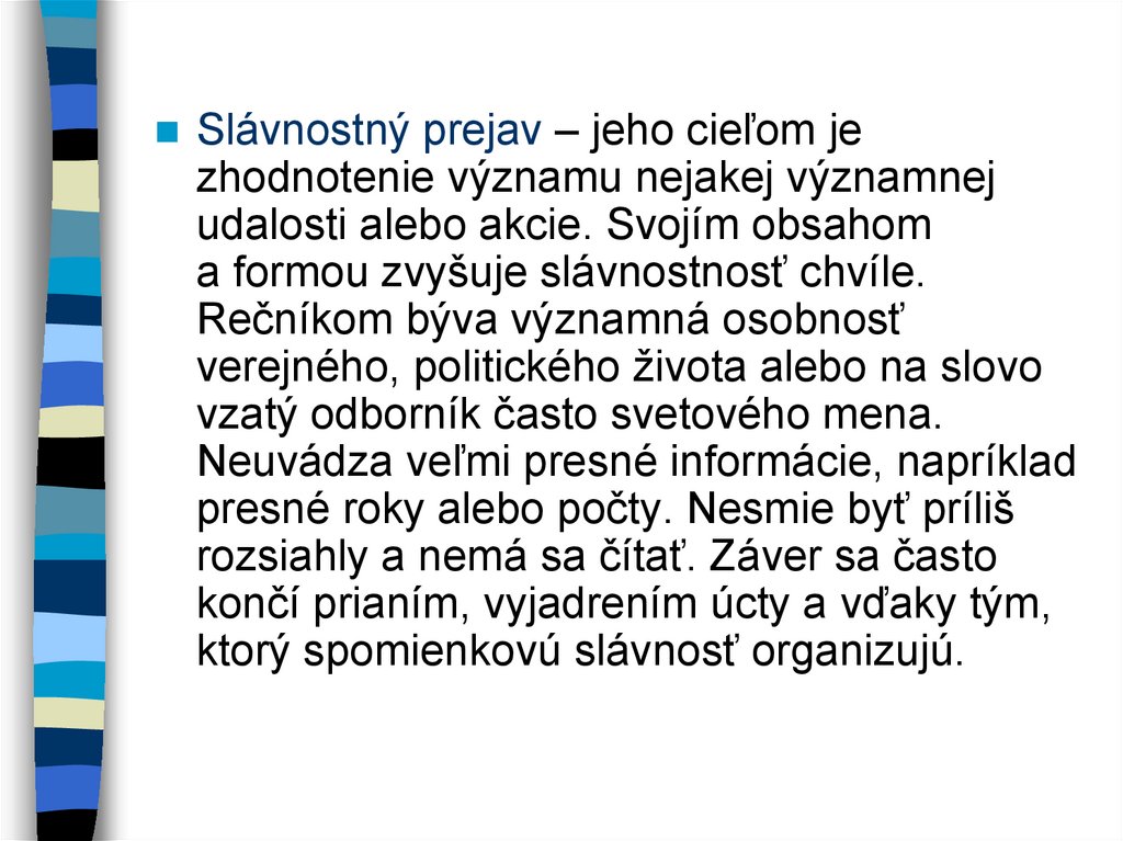 Slávnostný prejav – jeho cieľom jezhodnotenie významu nejakej významnej
