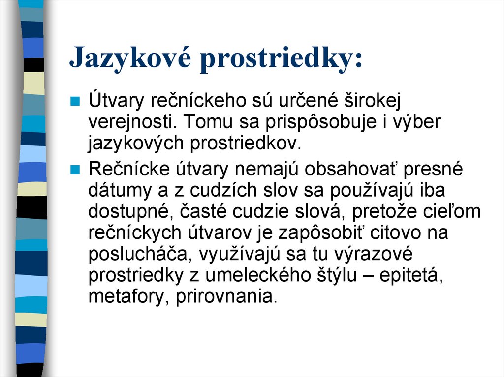 jazykových prostriedkov.
